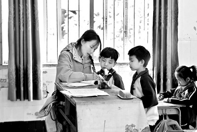 1月7日,贵州省铜仁市玉屏侗族自治县第五幼儿园的小朋友在教师指导下贴窗花。