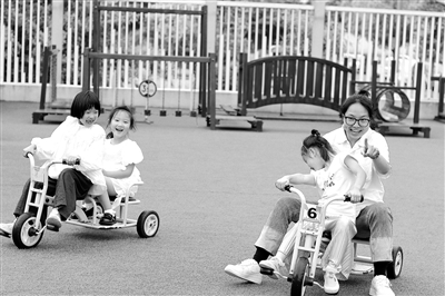 孩子们骑着从“租车行”租来的车在幼儿园穿行。 王名潇 供图